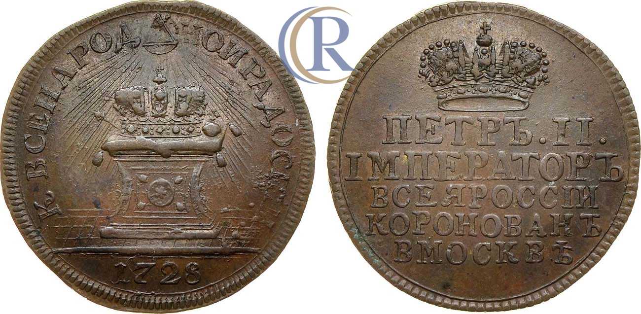 Медь. 4,33г. Проба и вес "против гривенника". Гурт гладкий. Биткин ЖН237(R1). Руденко 1728.н.1(R3). AU 58.