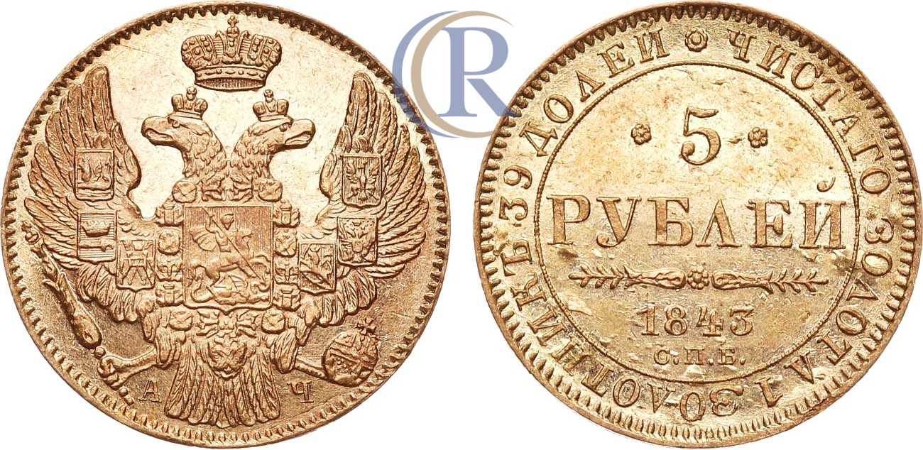 Золото. Аверс: орёл образца 1843-1844 гг. Уздеников 0222(•). Биткин 24(R). MS 63.