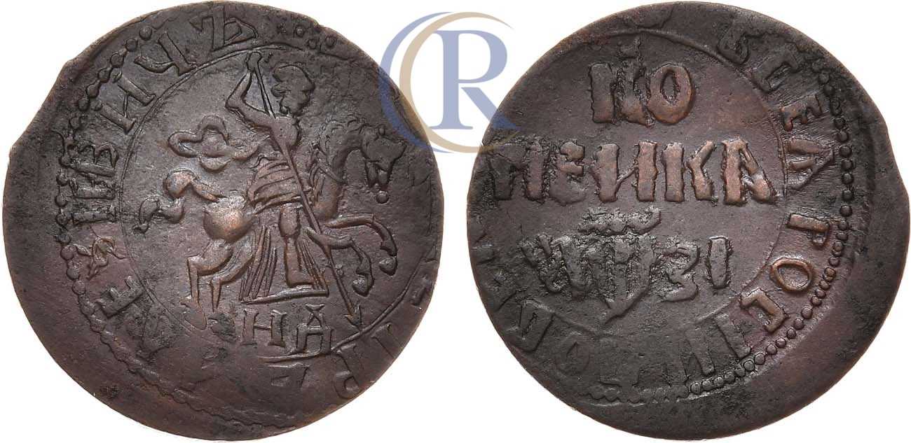 Копейки 1717 года Набережного монетного двора в высокой степени сохранности встречаются особенно редко.