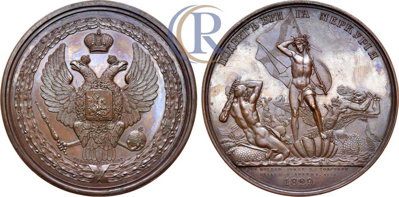 Бронза. 96,42г. Диаметр 66 мм. Санкт-Петербургский монетный двор. Аверс: медальер А.А. Клепиков (внизу под орлом "Р.А. КЛЕПИКОВЪ 1837"). Реверс: медальер А.П. Лялин по модели Ф.П. Толстого (под обрезом: "СЪ МОДЕЛИ ГРАФА Ф. ТОЛСТАГО. РѢЗАЛ А. ЛЯЛИНЪ. 1838."). Смирнов 156/442. Дьяков 1791(R1). MS 63.