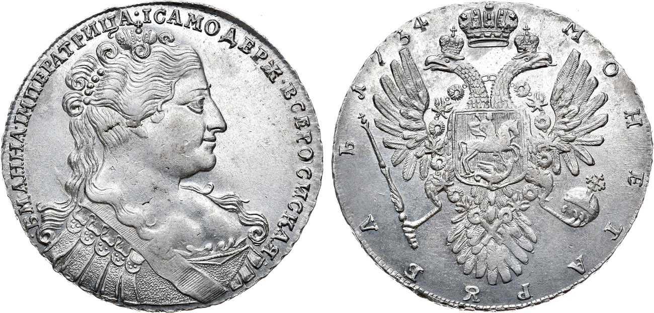 Рубли 1734 года с "лирическим" портретом в штемпельной сохранности встречаются особенно редко и представляют значительный коллекционный интерес. Данный экземпляр относится к группе наиболее редких типовых серебряных монет XVIII века. В каталоге В.В Узденикова "Монеты России 1700-1917" монета данного типа помещена в раздел наиболее редких и пробных монет. Один из лучших экземпляров, находящихся в коллекционном обороте.