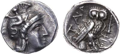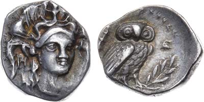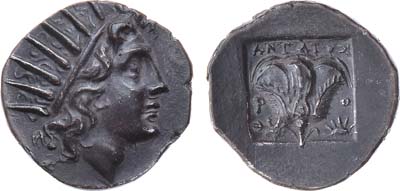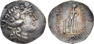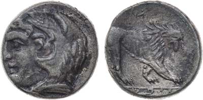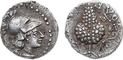 Серебро. 16,51г. Подражание древнегреческой тетрадрахме (Фракия, Фасос). Аверс: изображение головы молодого Диониса в литре и венке из плюща. Реверс: изображение Геракла с палицей и львиной шкурой - влево; легенда: "HPAKΛEOVΣ ΣΩTHPOΣ ΘAΣIΩN". Lukanc, Imitations, 590. AU.