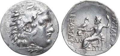 Серебро. 16,1г. Аверс: изображение головы Геракла в львиной шкуре вправо. Реверс: изображение Зевса на троне - влево, - держащего на правой руке орла; левой рукой опирается на скипетр; вертикальная легенда "BAΣIΛEΩΣ ", легенда спереди "AΛΕΞΑΝΔΡΟΥ"; монограммы на поле. XF+.