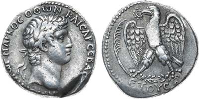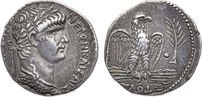 Серебро. 15,18г. Антиохия. Аверс: круговая легенда "ΝΕΡΩΝ ΚΑΙΣΑΡ ΣΕΒΑΣΤΟΣ", портрет Нерона вправо. Реверс: легенда "ETOΥΣ — BIP•I", изображение орла с распростертыми крыльями - вправо; справа пальмовая ветвь. McAlee 265a. Prieur 89. RPC I 4188.. AU.