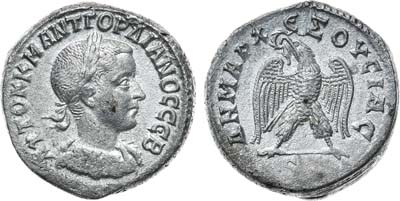 Серебро. 25,27г. Кадашевский монетный двор. Аверс: портрет образца 1733 года, без броши на груди, в нижней ленте 4 украшения, в ленте на плече 9 украшений. Реверс: последняя цифра года "4" в обозначении даты перегравирована из "3" на штемпеле. Уздеников 0710. Биткин 83 (R1). 8 рублей по Петрову. 5 рублей по Ильину. Дьяков 57, 7. Юсупов 107, 9(•). VF.