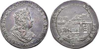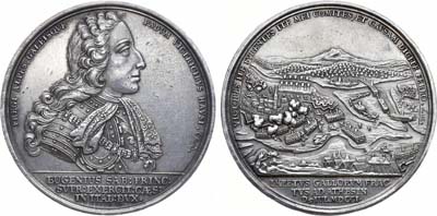 Серебро. 41,57г. Диаметр 47 мм. Медальеры Мартин Бруннер (на аверсе в обрезе рукава монограмма "MB") и Георг Фридрих Нюрнбергер (без подписи). AU.