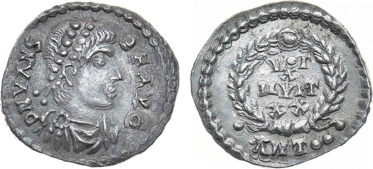Серебро. 2,3г. Балканский полуостров. Подражание силикве императора Валенса чеканки Антиохии (Sear 19699). Аверс: подражательная круговая легенда "D N VANS PF AVG"; портрет императора вправо. Реверс: строчная легенда в венке "VOT X MVLT XX ANT •••" RSC: тип 96p. UNC.