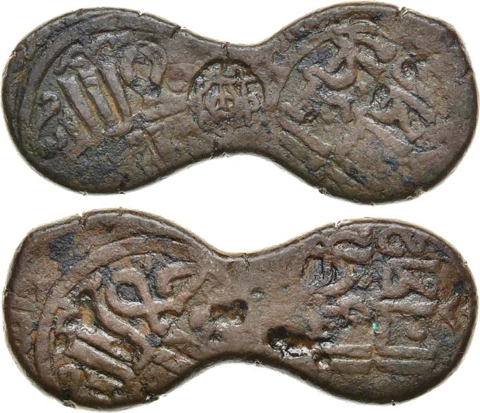 Бронза. 32,09г. Размеры: 57х23 мм. Аверс: надчеканка с именем грузинской царицы Русудан. Lang 12; Langlois pl VI, 8; Пахомов 6 (надчекан). VF.