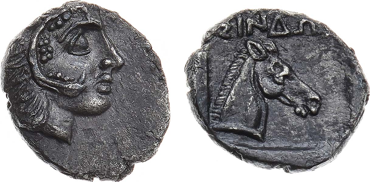 Серебро. 1,77г. Синдская гавань. Аверс: изображение головы Геракла вправо. Реверс: изображение головы лошади вправо; легенда "ΣΙΝΔΩΝ". SNG BM Black Sea 1008; SNG Stancomb 632; Анохин (1986) 42. UNC.