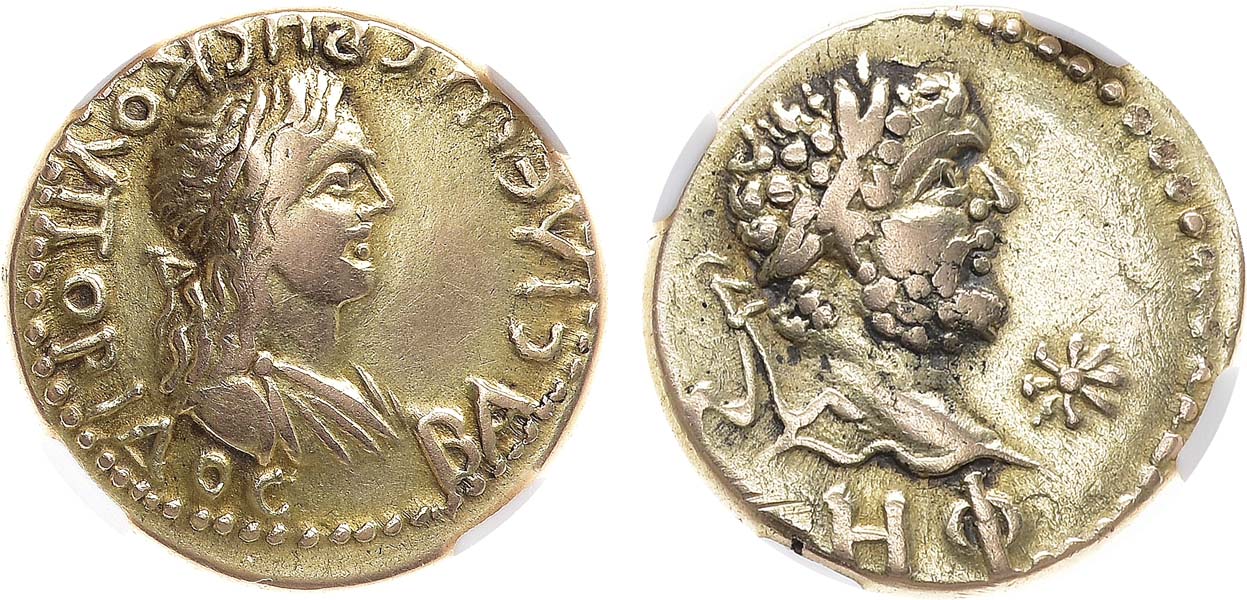 Электр. Аверс: портрет царя вправо; круговая легенда "ΒΑCΙΛΕωC ΡΗCΚΟΥΠΟΡΙΔΟC". Реверс: портрет Каракаллы вправо; справа звезда; внизу обозначение года "НФ" (508 г. б. э.). Анохин (1986) 628а. XF.