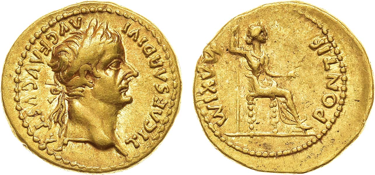 Золото. 7,82г. Лугдун. Аверс: круговая легенда "TI CAESAR DIVI AVG F AVGVSTVS"; портрет императора вправо. Реверс: круговая легенда "PONTIF MAXIM"; персонификация Ливии на троне вправо со скипетром и лавровой ветвью. Sear 1760. RIC 25. XF+.