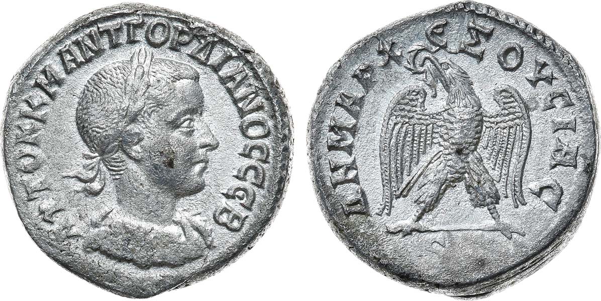 Серебро. 11,87г. Аверс: круговая легенда; портрет императора в лавровом венке - вправо. Реверс: круговая легенда; изображение орла с распростёртыми крыльями и венком в клюве - влево. RPC VII.2-3488. McAlee 860. Prieur 282. AU/UNC.