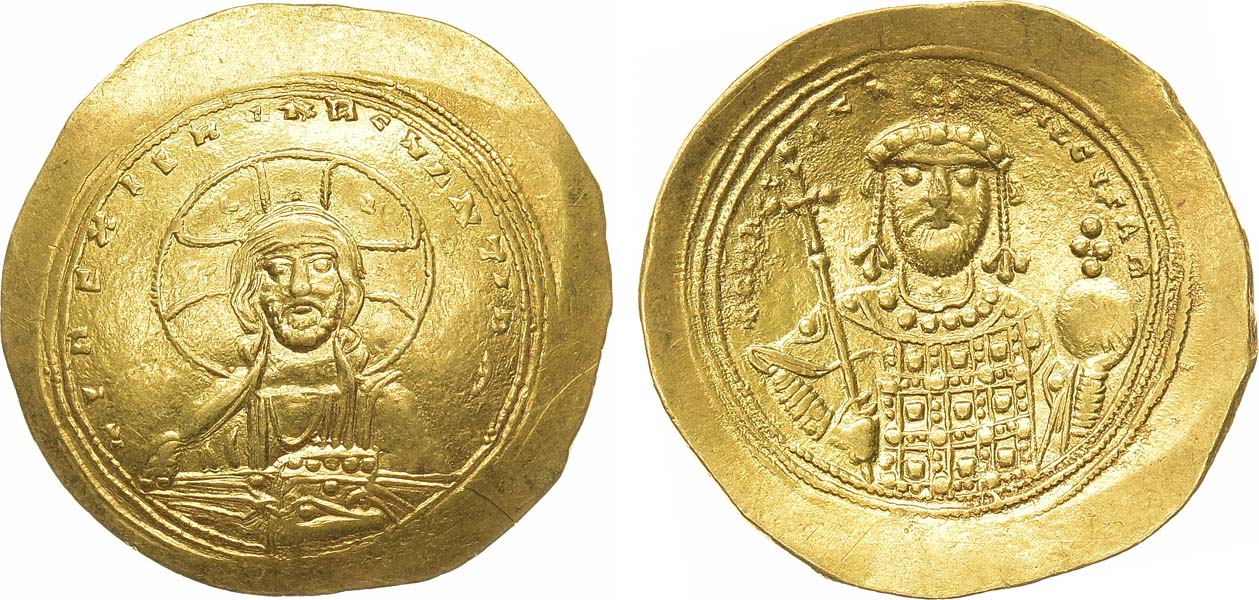 Золото. 4,35г. Константинополь. Аверс: круговая легенда "+IhС XIС REX REГNANTIhM"; изображение Христа с поднятой правой рукой и Евангелием в левой. Реверс: круговая легенда "+CWh-STAhTh-bASILEЧS RM"; портрет императора с державой и крестом. Sear 1830. Sommer 48.3. AU.