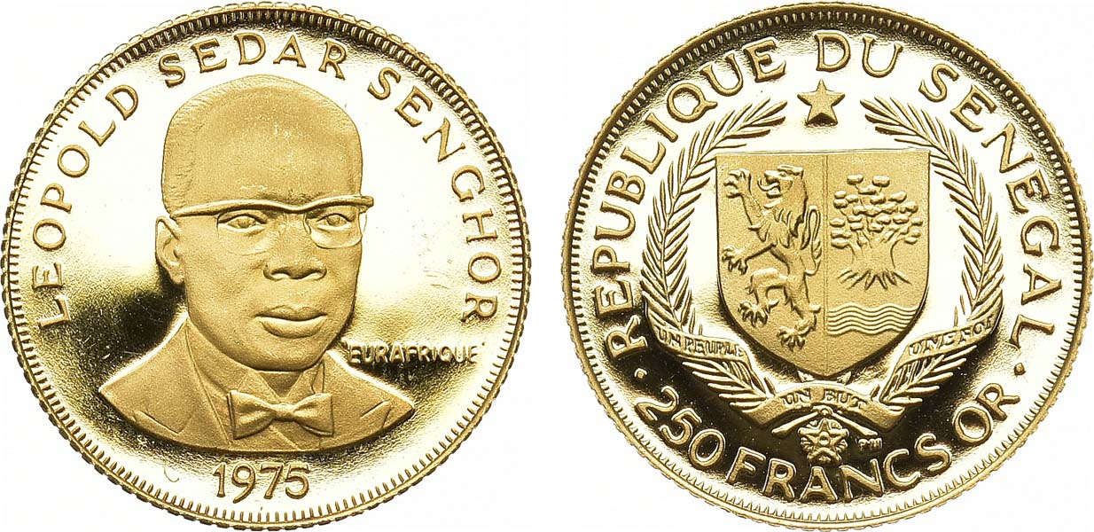 Золото 917 пробы. 4,06г. Тираж 1250 экз. Леопольд Седар Сенгор KM 7. PROOF.