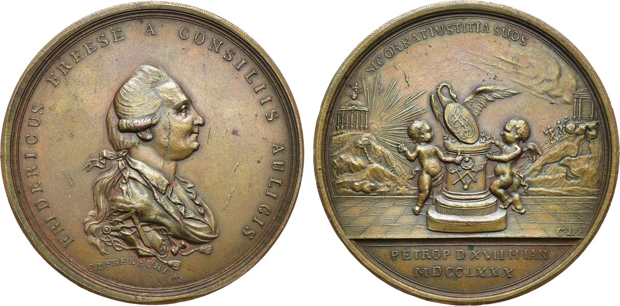 Бронза. 61,93г. Диаметр 49,2 мм. Санкт-Петербургский монетный двор. Медальер К. Леберехт (аверс: под портретом "C•LEBERECHT•F•", реверс: справа над обрезом "C•L•F•"). Рейхель 4479. Дьяков 186.1(R1). MS 61.