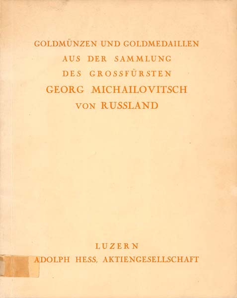 Люцерн, 25 октября 1939 года. 687 лотов. 20 стр., 17 табл. илл. Золотые и платиновые монеты и медали из коллекции Великого Князя Георгия Михайловича. Многие - уникальны.