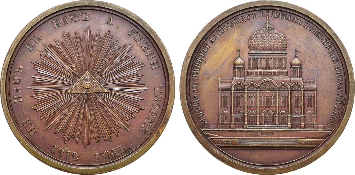 Бронза. 174,07г. Диаметр 78 мм. Санкт-Петербургский монетный двор. Медальер П. Уткин. Реверс: над обрезом слева "СОЧИНИЛЪ │ К. ТОНЪ." и справа "РѢЗАЛЪ │ П. УТКИНЪ.". Смирнов 496. Дьяков 540.1(R1). AU/UNC.