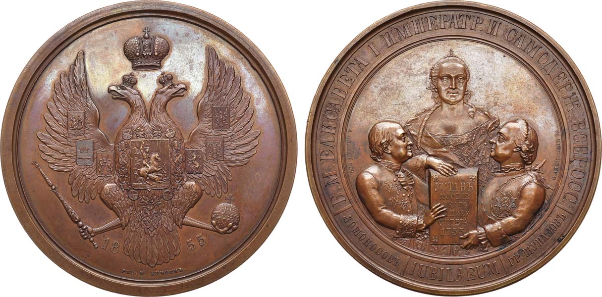 Бронза. 202,36г. Диаметр 79,2 мм. Санкт-Петербургский монетный двор. Аверс: медальер В.В. Алексеев по эскизу А.П. Лялина (слева у окружности "А. ЛЯЛИНЪ СОЧ."; справа у окружности "В.АЛЕКСѢЕВЪ Р."); Реверс: медальер М.В. Кучкин (под орлом: "РѢЗ. М. КУЧКИНЪ."). Смирнов 555. Дьяков 614.1(R0). UNC.