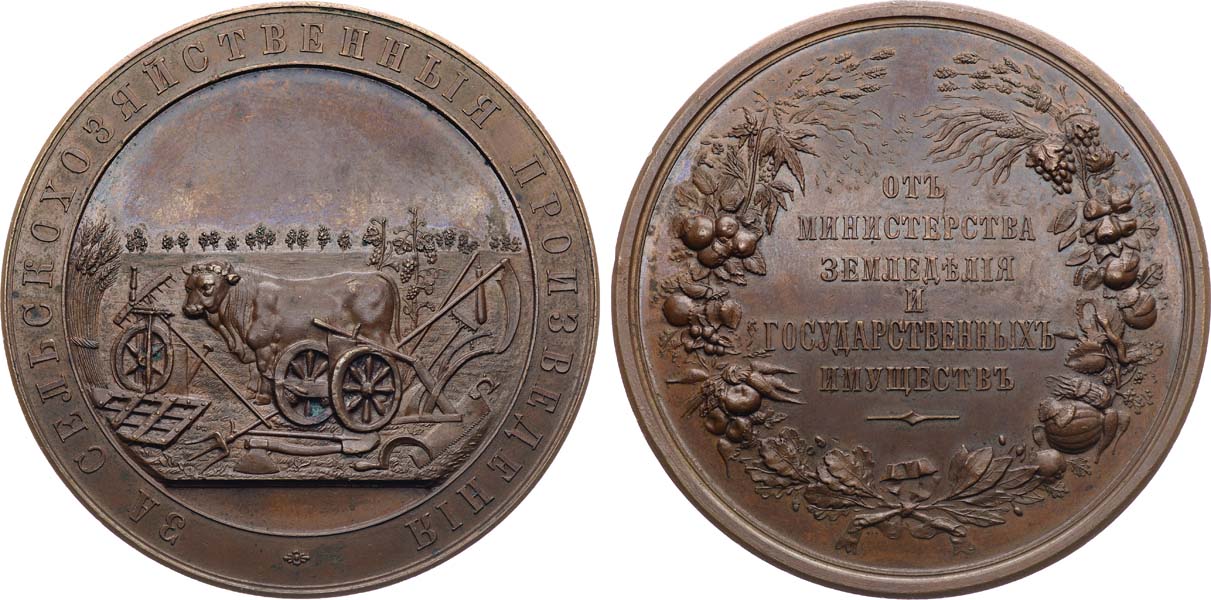 Бронза. 129,16г. Диаметр 65 мм. Санкт-Петербургский монетный двор, 1894-1902 гг. Медальер П. Стадницкий (аверс, без подписи), Н. Прокофьев (реверс, без подписи). Смирнов 1067/б. Дьяков 1157.2(R0). AU/UNC.