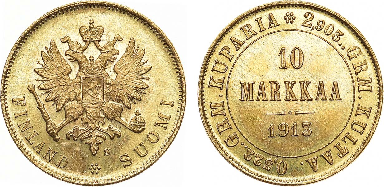 Золото. 3,22г. Для Финляндии. Гельсингфорсский монетный двор. Уздеников 4815(–). Биткин 394. Казаков 456. MS 65.