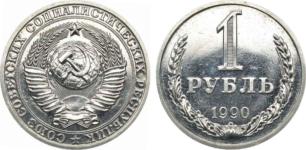 Медно-никелевый сплав. 7,68г. Ошибочно датированная гуртовая надпись: «ОДИН РУБЛЬ 1989». ФедоринVI 45 (200 у.е.). MS 65 PL.