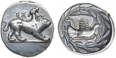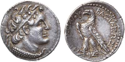 Серебро. 14,44г. Антиохия-на-Оронте. Аверс: портрет Веспасиана в лавровом венке вправо; круговая легенда "ΑVΤΟΚΡΑTO ΚΑΙΣΑ Ο VΕΣΠΑΣΙΑΝΟV". Реверс: изображение орла с расправленными крыльями - влево; слева от него пальмовая ветвь; круговая легенда "ΕΤΟΥΣ ΝΕΟΥ ΙΕΡΟΥ". XF.