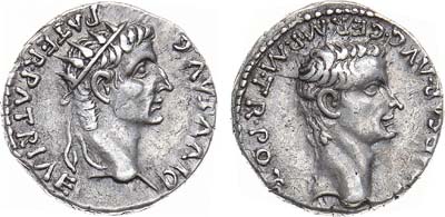 Серебро. 3,89г. Лугдун. Аверс: портрет Калигулы вправо; круговая легенда "C•CAESAR•AVG•GERM•P•M•TR•POT". Реверс: портрет Августа в короне вправо; круговая легенда "DIVVS•AVG PATER•PATRIAE". Sear 1807. XF+/AU.