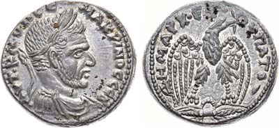 Биллон. 13,69г. Лаодикея Приморская. Аверс: портрет императора в лавровом венке вправо; круговая легенда "AYT K M OΠ CЄY MAKPЄINOC CЄB". Реверс: изображение орла с распростёртыми крыльями - вправо; круговая легенда "ΔHMAPX ЄΞ YΠATO". AU/UNC.