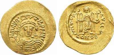 Золото. 4,46г. Константинополь. Аверс: круговая легенда "PP AVC"; портрет императора анфас в военном шлеме с перьями; с державой с крестом - в правой руке. Реверс: круговая легенда "VICTORI-A AVCCZ"; изображение Ангела анфас с увенчанным хризмой посохом в правой руке и державой с крестом - в левой; под линией обреза "CONOB". Sear 478. Sommer 7.5. UNC.