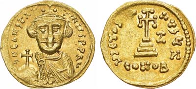 Золото. 4,3г. Константинополь. Аверс: круговая легенда "DN CONSTAN-TINЧS PP AVG"; портрет императора анфас с державой в правой руке. Реверс: круговая легенда "VICTORIA-AVГЧ Z"; изображение Креста на трёх ступенях; внизу "CONOB". Sear 949. Sommer 12.9. AU.