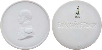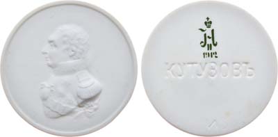Фарфор. 31,16г. Диаметр 55 мм. Санкт-Петербург, Императорский фарфоровый завод (на реверсе марка по бисквиту "вензель Николая II / 1912", на шесть часов знак формовщика в массе "Х"). Медальер (скульптор) Фёдор Петрович Толстой (без подписи). UNC.