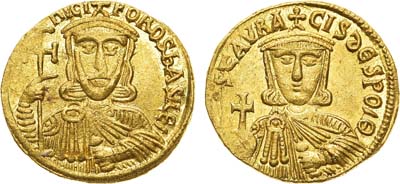 Золото. 4,38г. Константинополь. Аверс: круговая легенда "hICI-FOROS bASILEI"; изображение императора Никифора в хламидии и в короне с крестом; с крестом в правой руке. Реверс: круговая легенда "STAVRA-CIS dESPOIO"; изображение императора Ставракия анфас, в хламидии и в короне с крестом; с державой в правой руке. Sear 1604. Sommer 27.1.2. UNC.