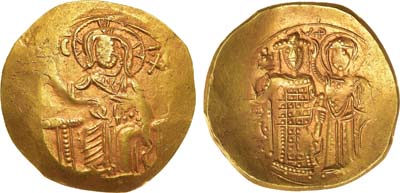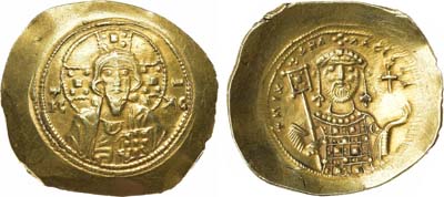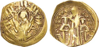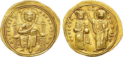 Золото. 4,4г. Константинополь. Аверс: круговая легенда "+hS XIS REX - RESNANTIhm"; изображение Христа на троне с поднятой правой рукой и Евангелием в левой. Реверс: круговая легенда "ѲCEhOHѲ - RWMAhW"; изображение Богоматери, возлагающей корону на императора. Sear 1819. Sommer 43.2. XF+.