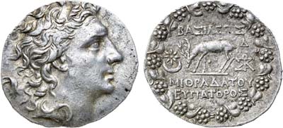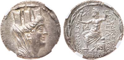Серебро. Лаодикея Приморская. Аверс: бюст богини Тихе вправо. Реверс: Зевс сидит слева, держит Нику с венком в вытянутой правой руке и опирается на упирающийся в землю скипетр левой рукой, под обрезом изображения "KA"; легенда "ΛΑΟΔΙΚΕΩΝ / ΤΗΣ ΙΕΡΑΣ ΚΑΙ / ΑΥΤΟΝΟΜΟV". AU.
