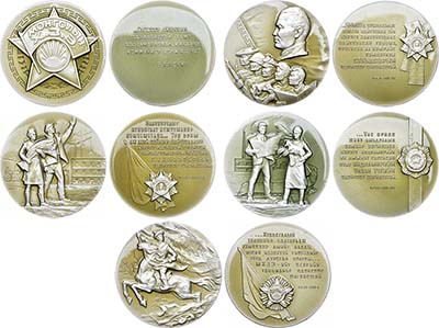 Алюминий, лак. Ленинградский монетный двор. Медальер Б.Л. Старис. Диаметр 58 мм. Медаль 1972 года. В память 50-летия Монгольского революционного союза молодежи. 29.9 г. Шкурко, Салыков 718. Медаль 1972 года. В память 50-летия Монгольского революционного союза молодежи. Награждение молодежи Монголии орденом Сухэ-Батора. 1961. 31,94 г. Шкурко, Салыков 719. Медаль 1972 года. В память 50-летия Монгольского революционного союза молодежи. Награждение молодежи Монголии орденом Трудового Красного Знамени. 33,4 г. Шкурко, Салыков 720. Медаль 1972 года. В память 50-летия Монгольского революционного союза молодежи. Награждение молодежи Монголии вторым орденом Сухэ-Батора. 1961. 32,11 г. Шкурко, Салыков 721. Медаль 1972 года. В память 50-летия Монгольского революционного союза молодежи. Награждение молодежи Монголии орденом Боевого Красного Знамени. 1931. 29,54 г. Шкурко, Салыков 722. UNC.