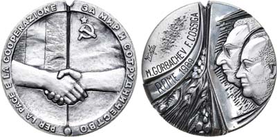 Серебро. 30,26г. Диаметр 39,1 мм. Италия, Флоренция. Фирма «Пиккиани э Барлакки». Медальеры: аверс — Джорио Виварелли (аверс — подпись вверху слева), реверс — А.В. Бакланов (без подписи). На гурте: итальянское пробирное клеймо, проба металла «800» и номер «2124». Тираж 10000 нумерованных экз. UNC.