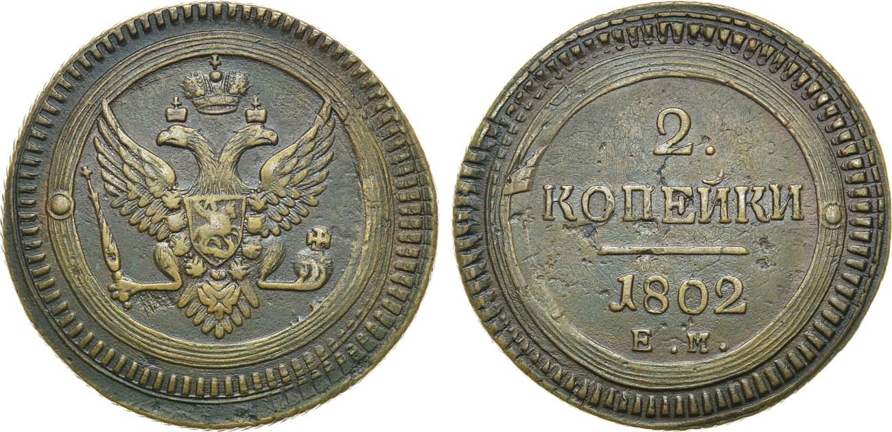 Представленная монета является подтверждением существования пробных неутверждённых 2 копеек 1802 года с обозначением монетного двора на аверсе, под гербом (наряду с монетами, отчеканенными исправленными штемпелями). В данном случае подобная монета была уничтожена перечеканкой. Требует дальнейшего исследования и каталогизации.