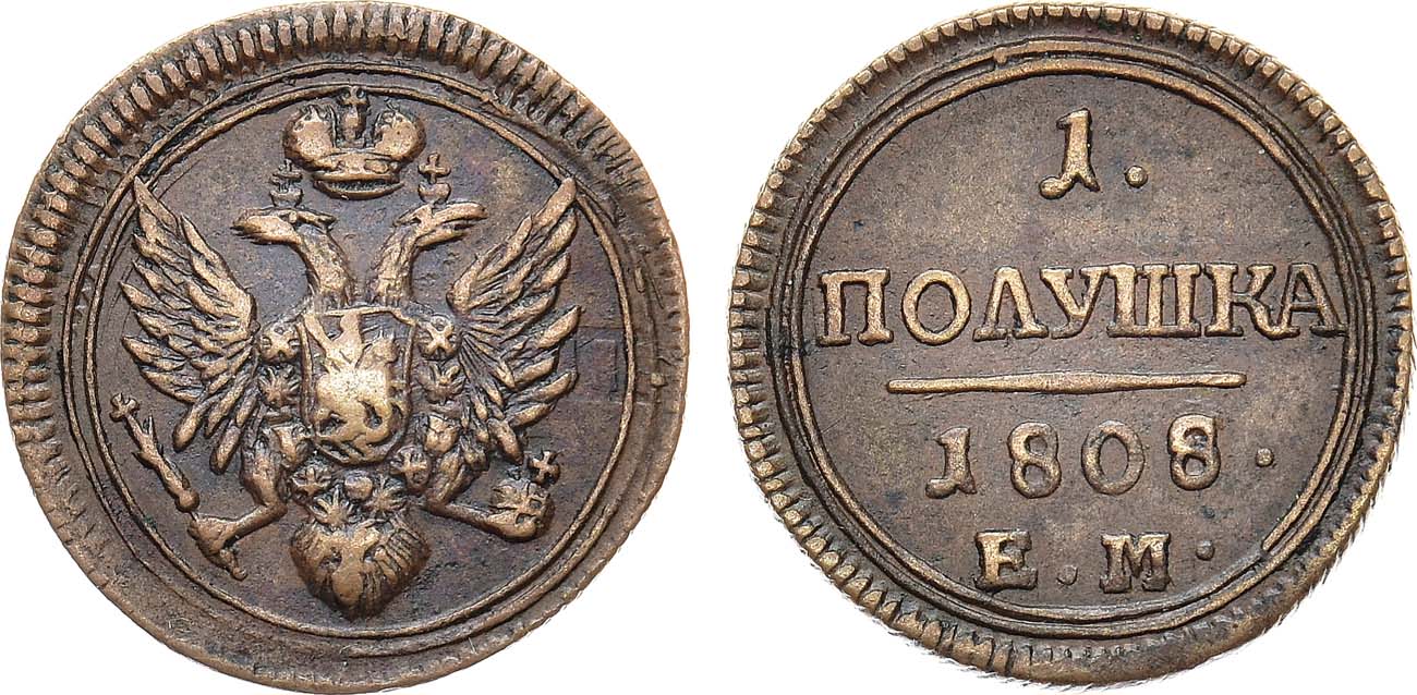 Полушки 1808 года чеканки Екатеринбургского монетного двора встречаются очень редко.