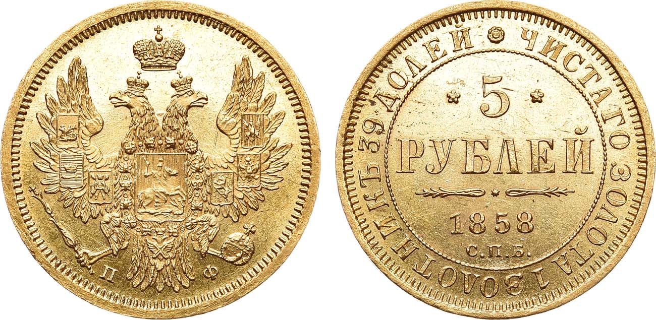 5 рублей 1858 года встречаются очень редко.