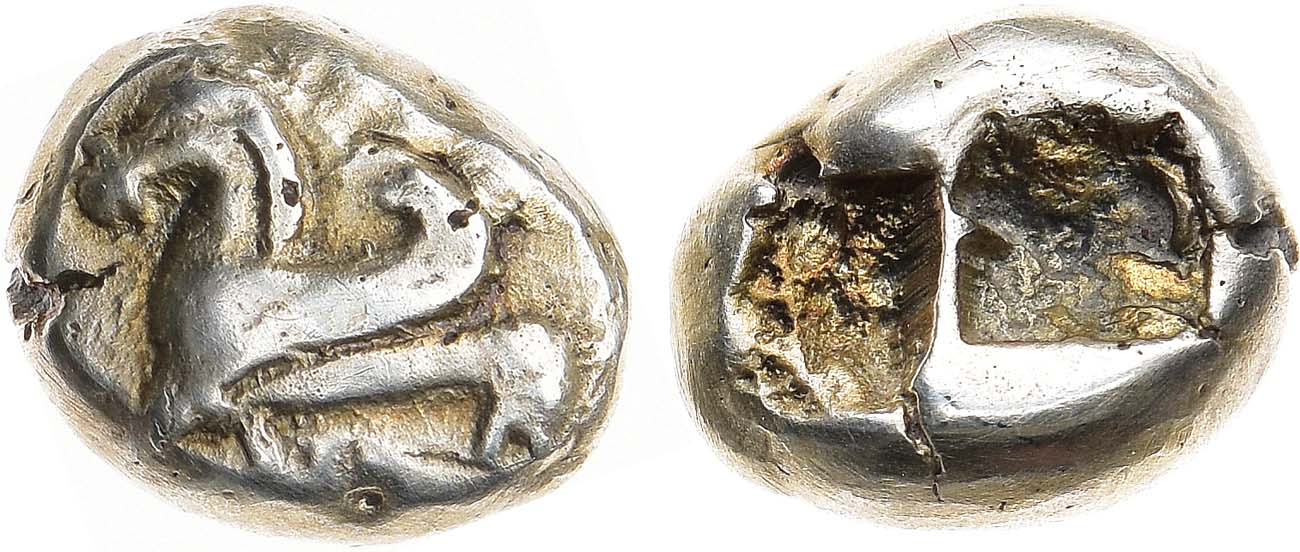 Электр. 4,64г. Аверс: изображение Пегаса влево. Реверс: два вдавленных квадрата. VF.