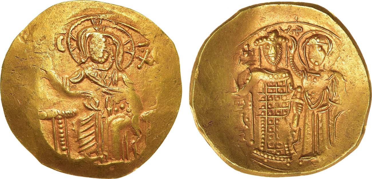 Золото. 4,3г. Магнесия. Аверс: изображение Христа на троне анфас, с поднятой правой рукой и Евангелием - в левой. Реверс: изображение Богоматери, возлагающей корону на императора. Sear 2073. Sommer 70.1.5. AU/UNC.