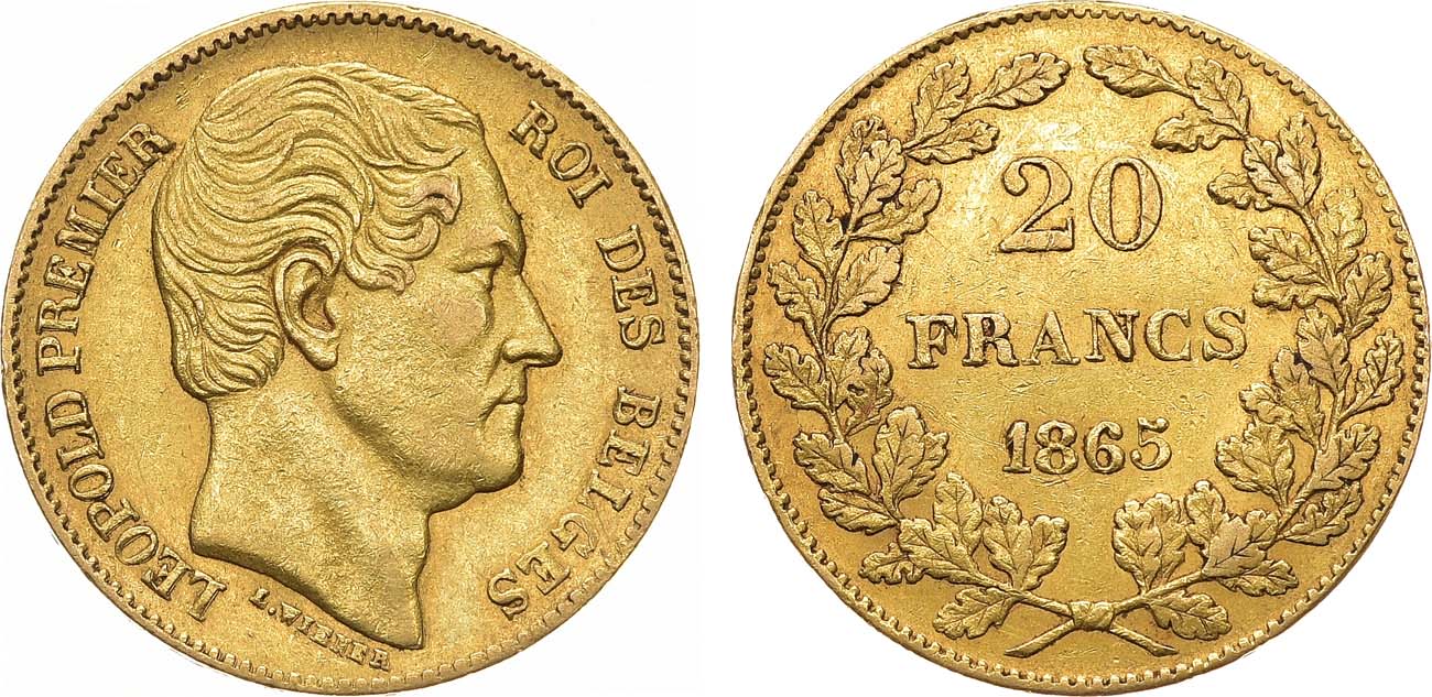 Золото 900 пробы. 6,41г. Брюссель. KM 23. AU 53.