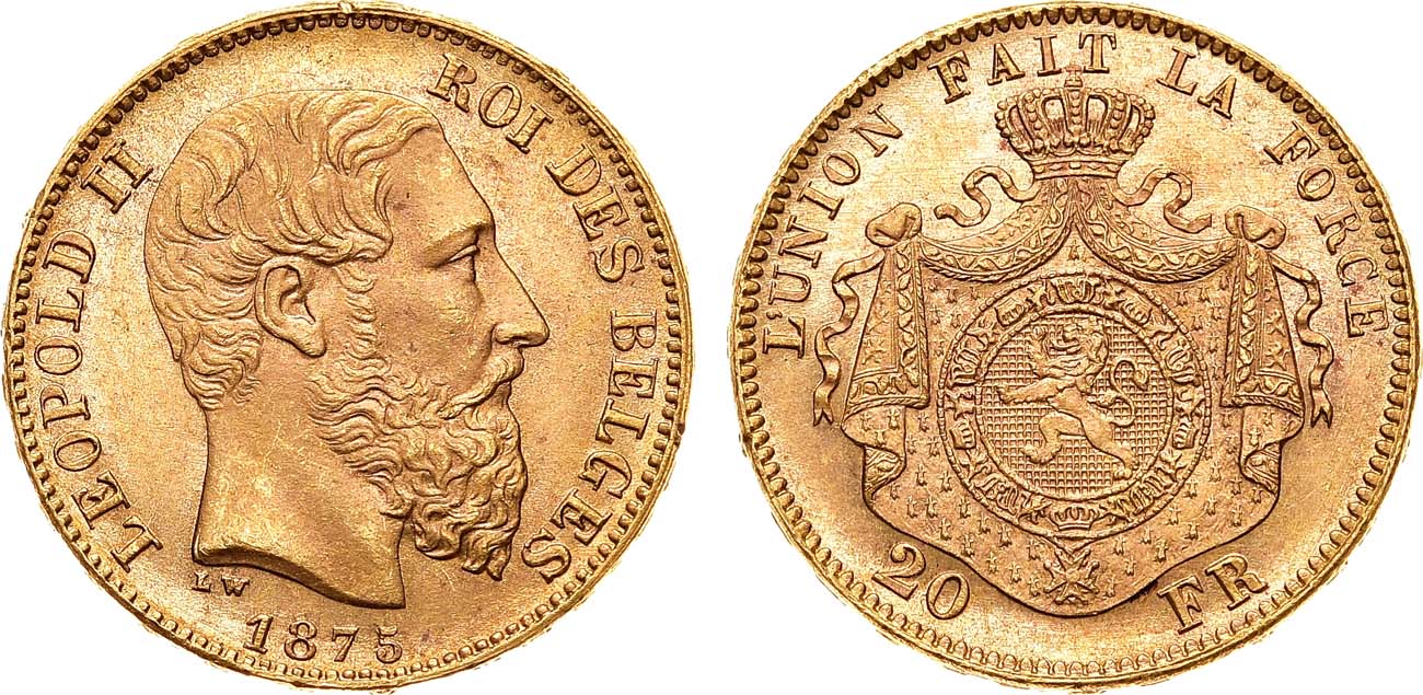 Золото 900 пробы. 6,43г. Брюссель. Тираж: 4134253 экз. KM 37. MS 64.