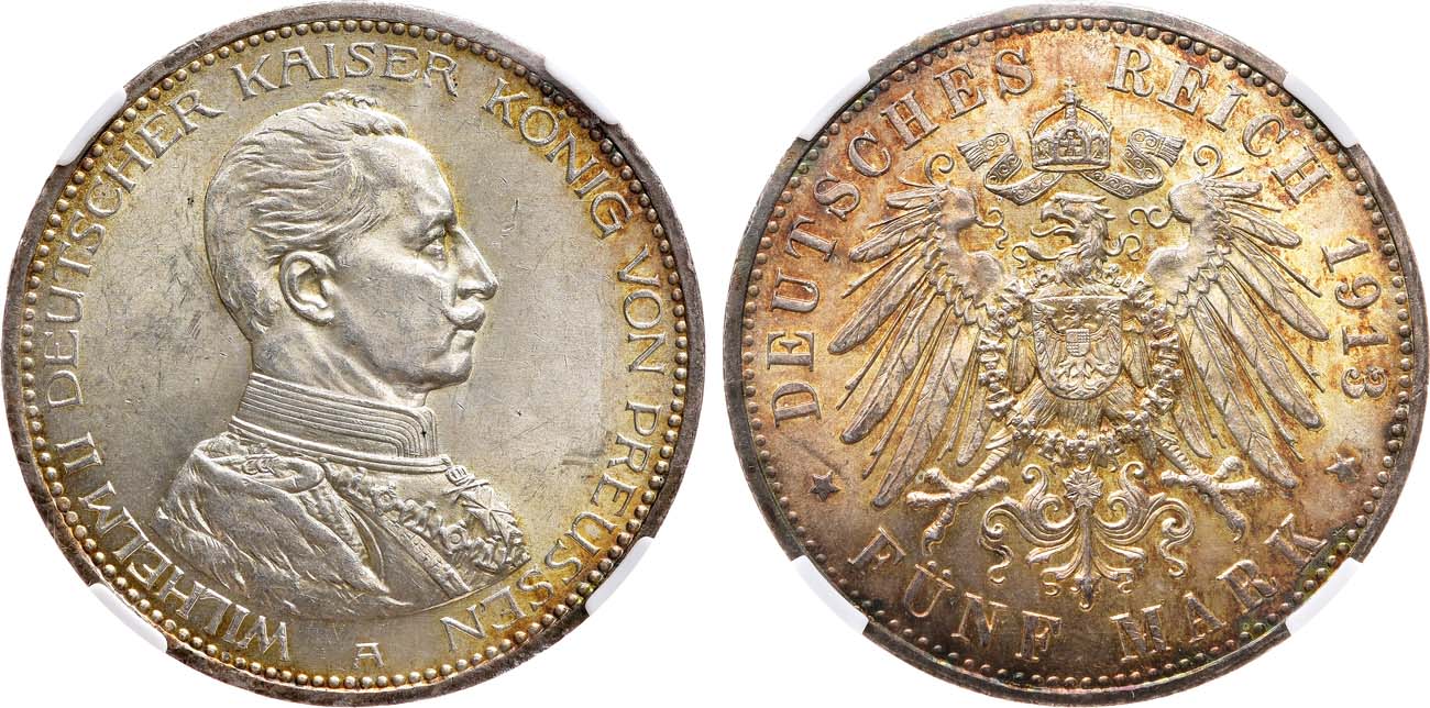 Серебро. Берлин (А). Отчеканена в память 25-летия правления Вильгельма II. KM 536. Jaeger 114. Weege 114.. MS 63.