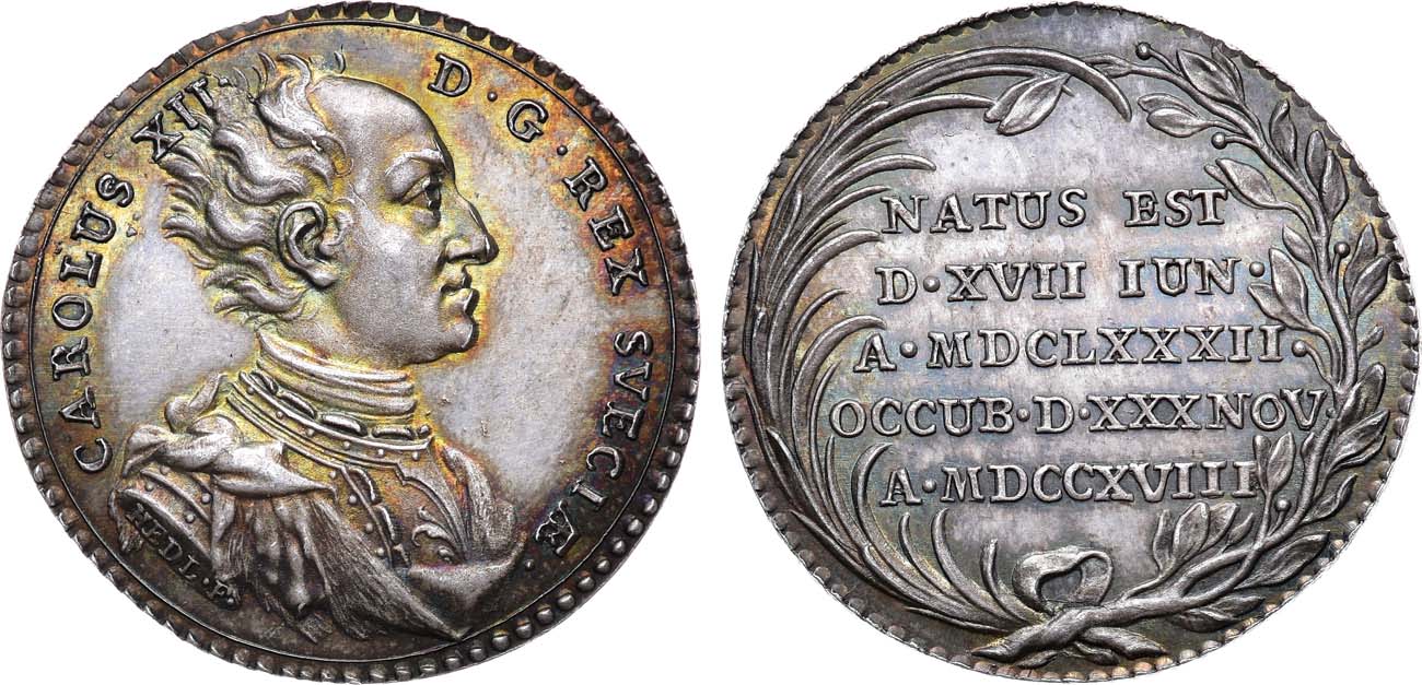 Серебро. 13,69г. Диаметр 32,5 мм. Медальер И.К. Гедлингер (на аверсе в обрезе рукава "HEDL•F•"). Аверс: драпированный бюст короля в доспехах вправо. Реверс: Годы жизни в пять строк в лаврово-пальмовом венке. UNC.
