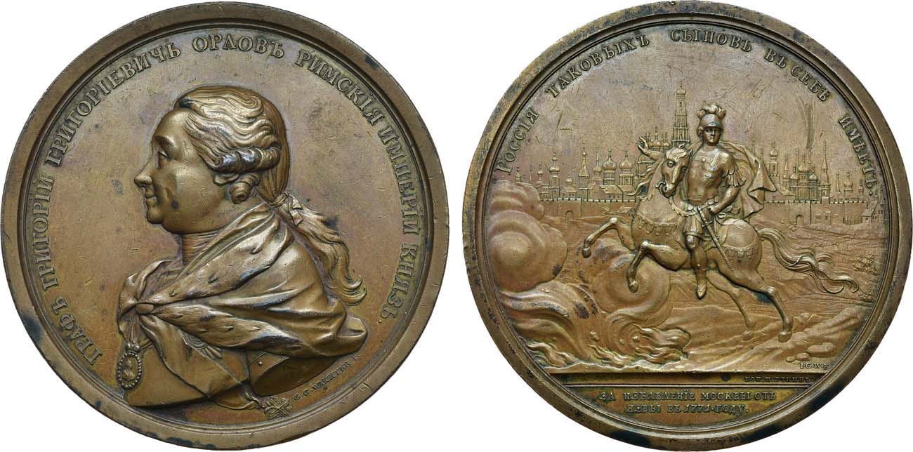 Надпись на реверсе "ЗА ИЗБАВЛЕНÏЕ МОСКВЫ ОТЪ | ЯЗВЫ ВЪ 1771 ".