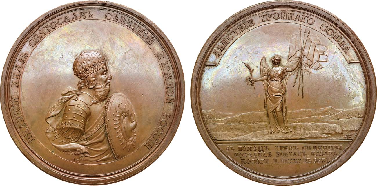 Бронза. 194,72г. Диаметр 79 мм. Санкт-Петербургский монетный двор. Историческая серия медалей №68. Медальеры: Т. Иванов (на аверсе под портретом "•T•I•"), П. Бобровщиков (на реверсе слева, над линией обреза "В", справа "68"). Смирнов 130. Дьяков 1735(R1). MS 64.