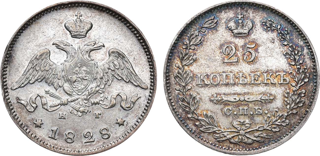 25 копеек 1828 года - наиболее редкая монета из данной серии.