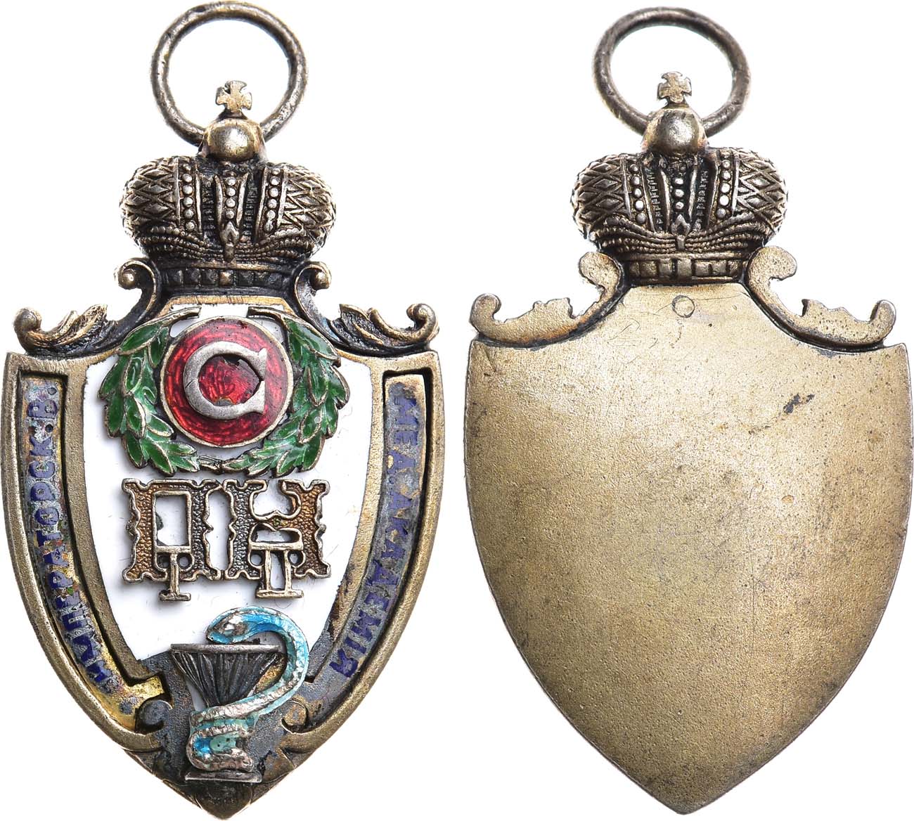 Серебро, золочение, эмаль. 16,38г. Размеры 41,2х24,9 мм. Российская Империя. Неизвестная мастерская. С оригинальным соединительным кольцом. AU/UNC.