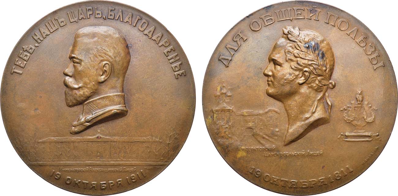 Бронза. 194,27г. Диаметр 76,7 мм. Санкт-Петербургский монетный двор. Медальер А.Ф.Васютинский по лепке М.Л.Диллон (аверс, справа под обрезом, и реверс, справа внизу у окружности: "М.ДИЛЛОНЪ."). Смирнов, доп. 1443. Дьяков 1521.1(R1). UNC.